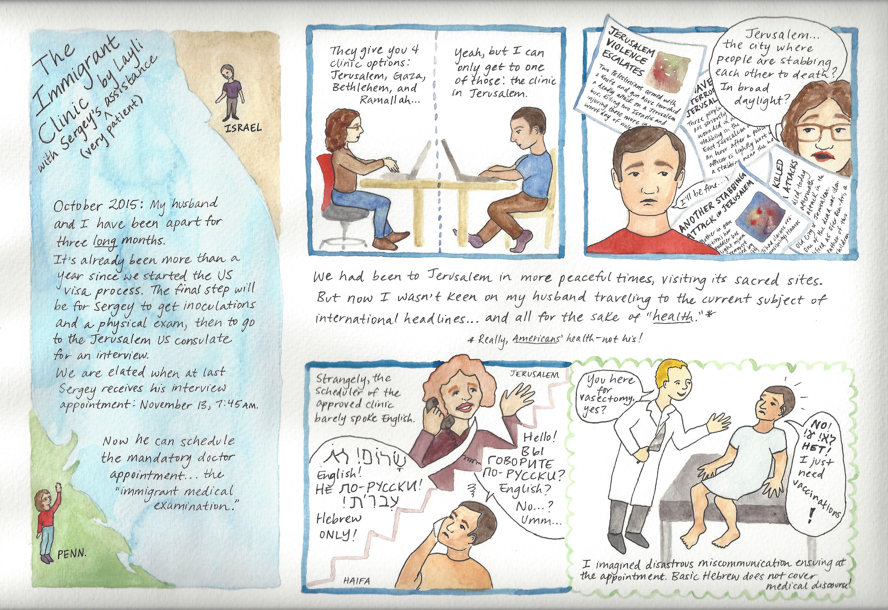 “The Immigrant Clinic” is a comic I created in graduate school for a seminar on graphic medicine taught by Dr. Susan Squier.