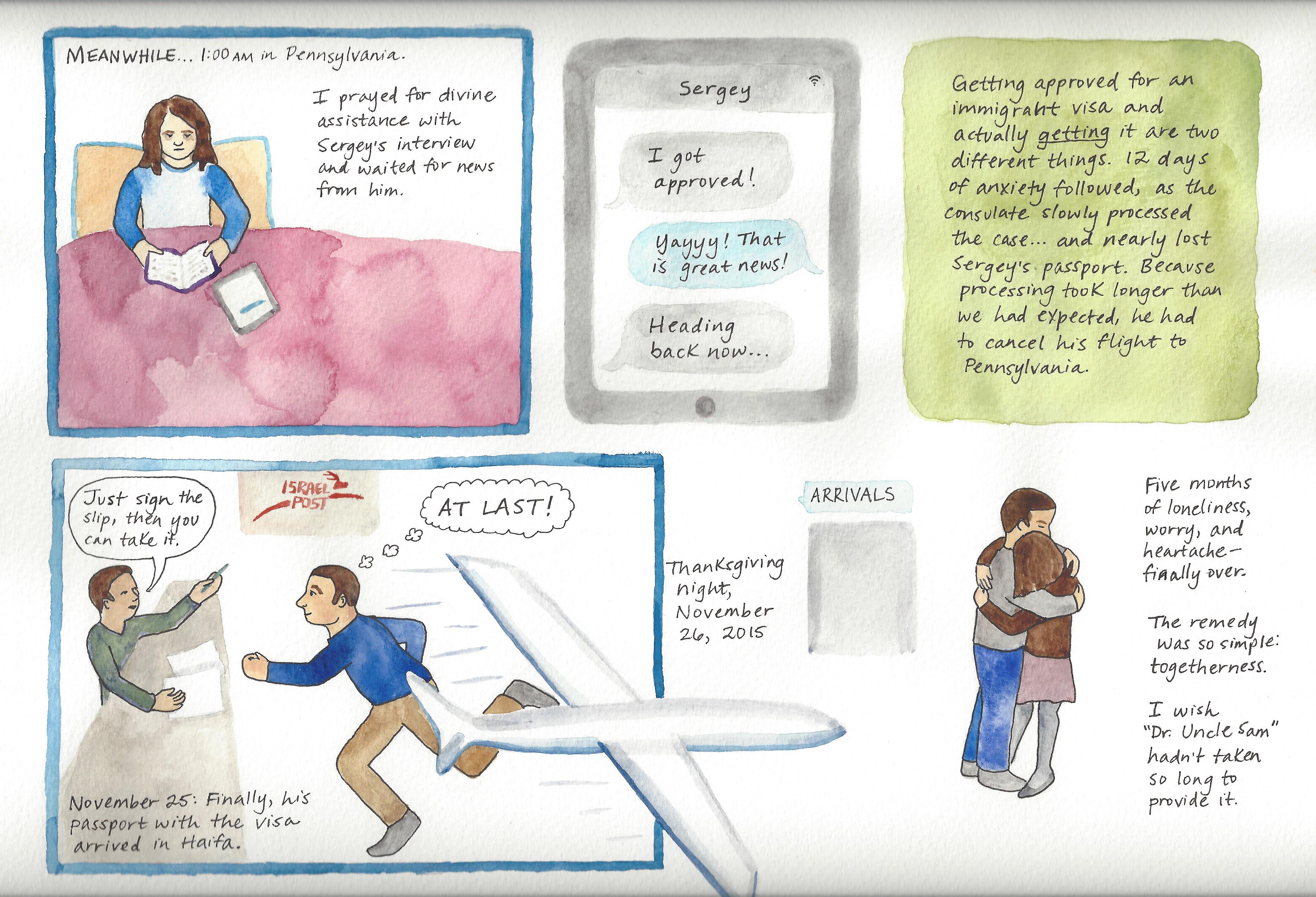 Today, Sergey is in the midst of his latest test, the immigration process, which relegates him to “alien spouse” status and has forced us to live thousands of miles apart. But, in his typically selfless manner, he takes on the role of the comforter, reassuring me in our daily calls that it is just a matter of time.