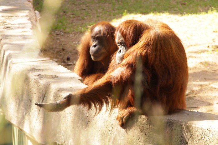Besides the impressive collection of homo sapiens cubs, there were the monkeys–so many primates!  Tamarins, baboons, capuchins, orangutans, gorillas, lemurs, colobus, monkey A, monkey B, monkey see, monkey do…  One orangutan sat still on the edge of his enclosure’s moat with a hand outstretched as if waiting for a long overdue gift.  On the whole, they were better behaved than the children.