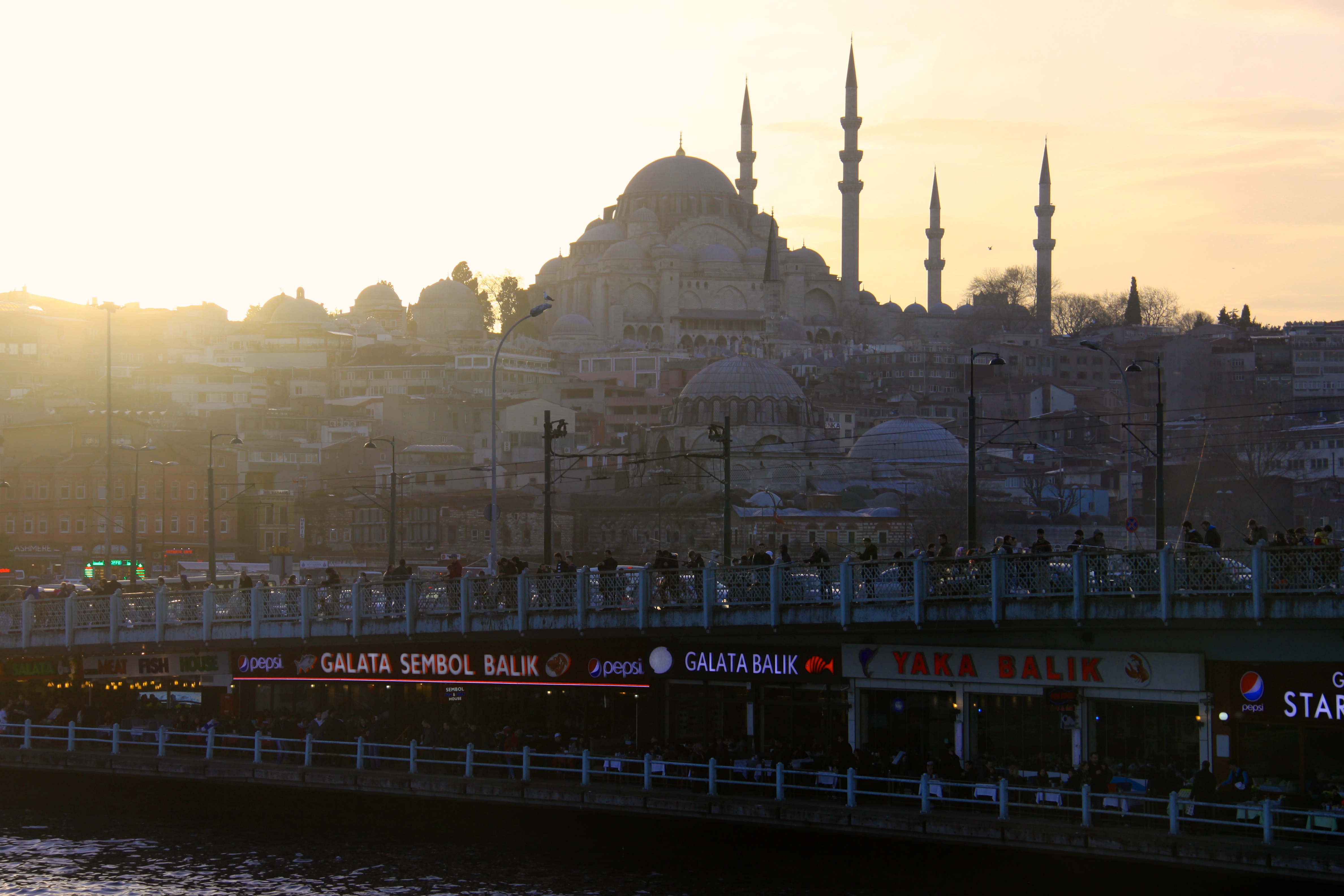 It's hard to see, but the white specks above the dome of the Blue Mosque are seagulls.
