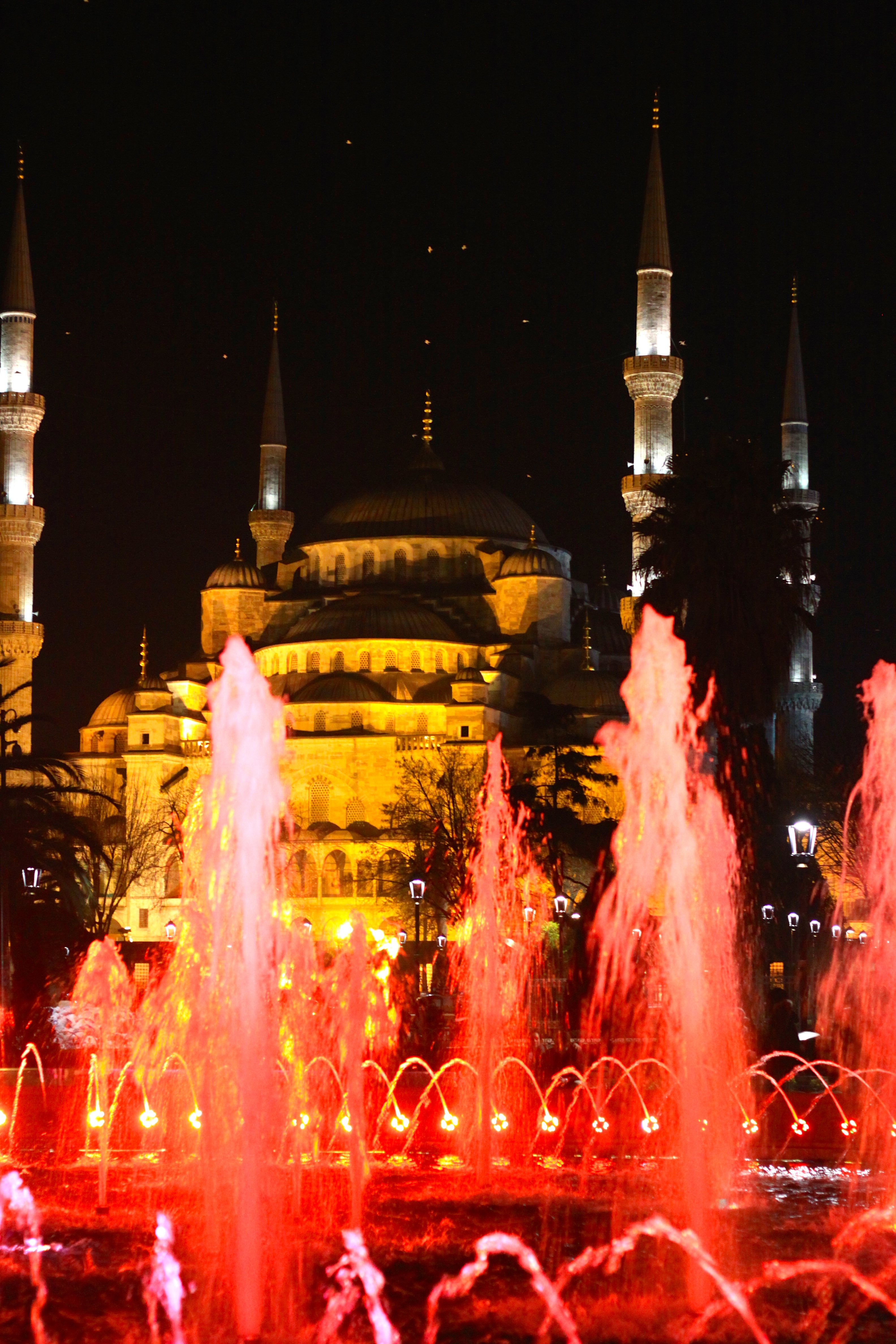 The white specks above the dome of the Blue Mosque (which looks like a yellow mosque at night) are seagulls.