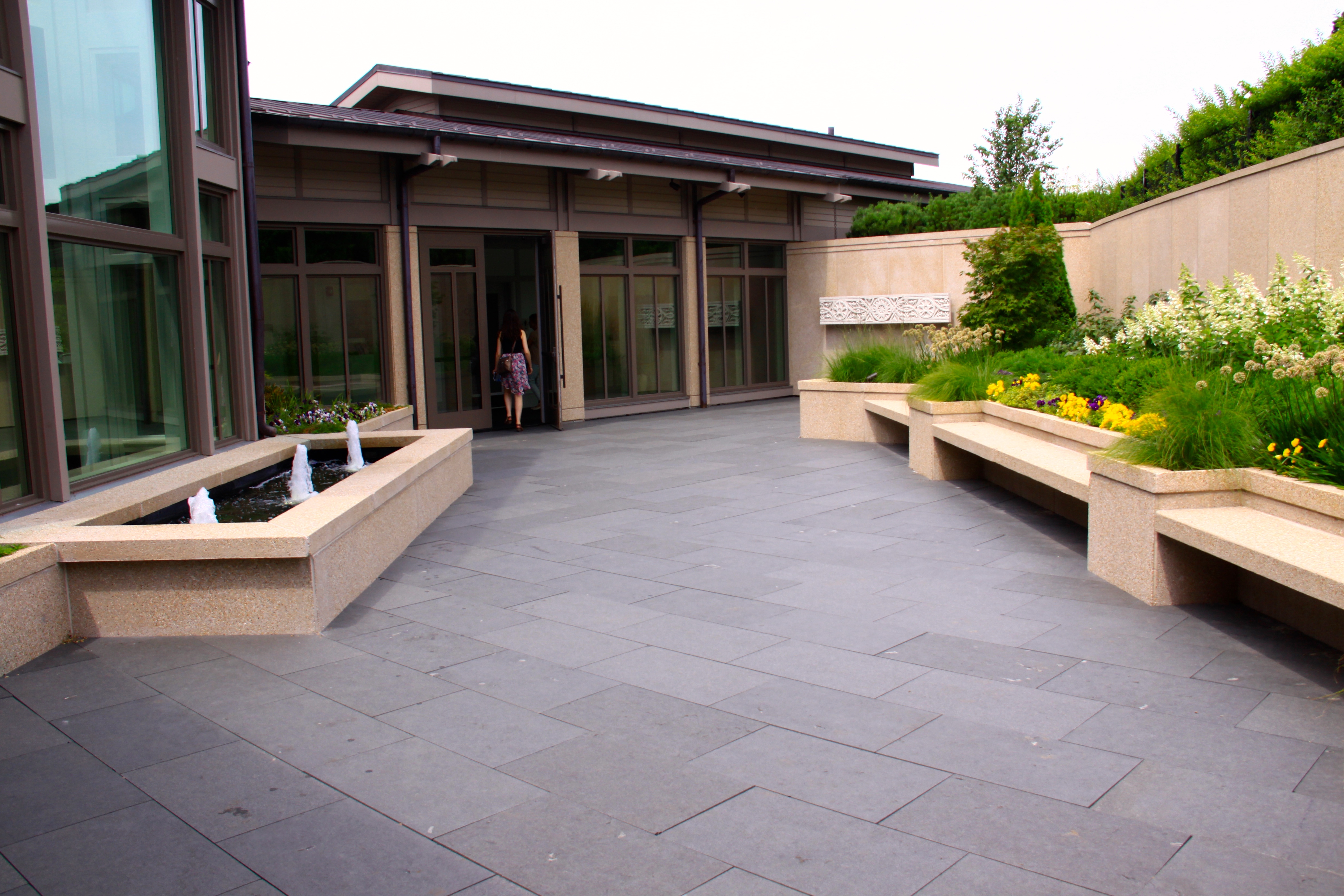 Speaking of the visitor’s center, it was my first visit to the House of Worship where we didn’t head downstairs beneath the main auditorium to go to the bookstore and visit the cornerstone placed by ‘Abdu’l-Bahá over a century ago. This time, from the parking lot, we entered the low, prairie-style building. Inside, the top floor affords a view of the majestic white dome of the Mother Temple of the West and opens onto a quiet courtyard. Browsing through the informational signs posted on the walls, I learned a few new things about the construction of the temple, which was a great decades-long undertaking by the young American Bahá’í community. For example, Louis Bourgeois, the architect, had for years dreamt of building a temple to the Truth—and then he became Bahá’í, enabling him to wed his personal ambition to the Bahá’í community’s goal of building a Mashriqu’l-Adhkár. When he designed the complex motifs that cover the temple, he laid out 70-foot long sheets of paper on his studio floor and drew them full size. Pretty impressive!