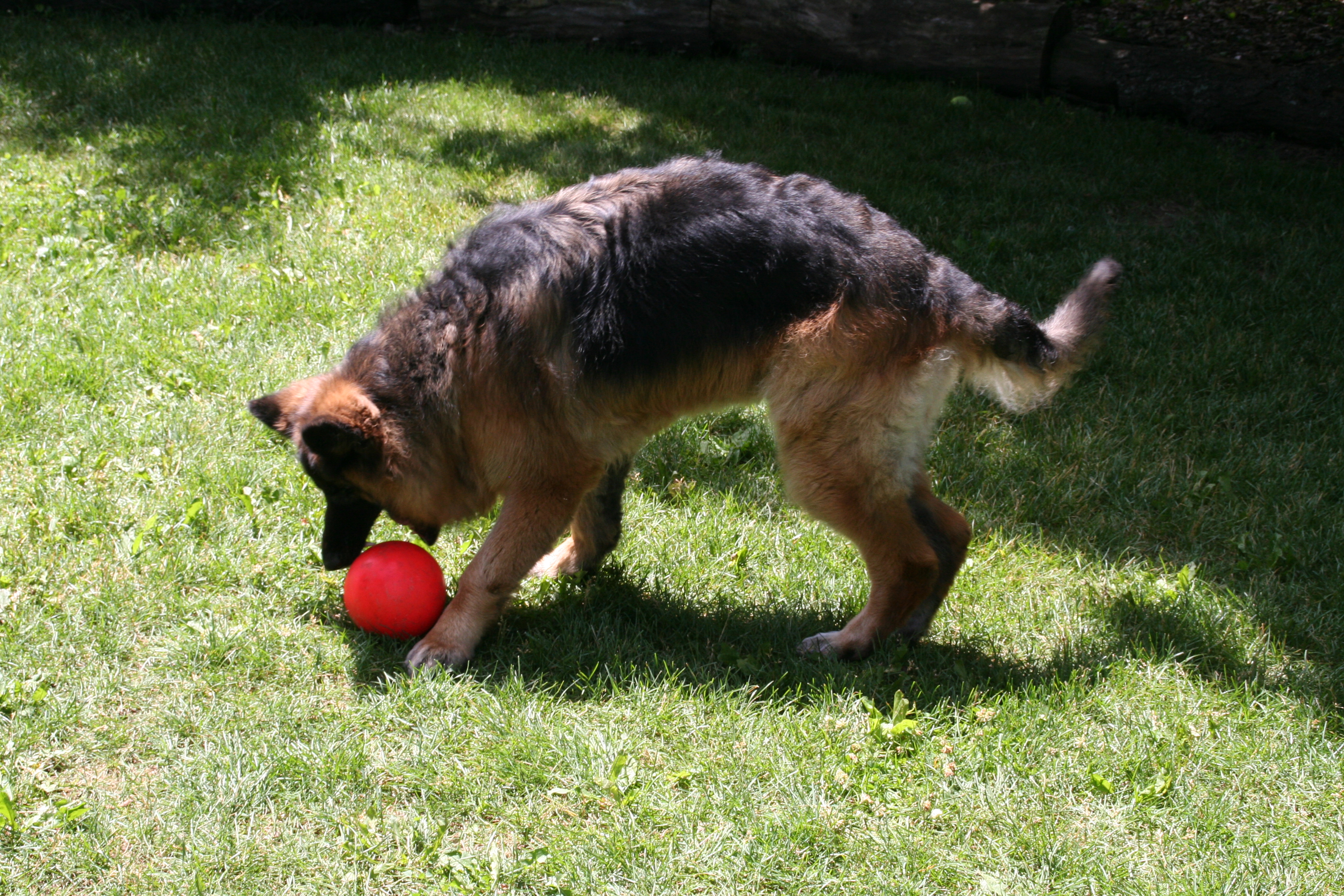 Shadow had her quirks, her phobias, and her ailments, yes.  Her eccentricity was only rivaled by the lead character in Marley and Me (go read it!).  Nevertheless, my fondest memories of her are relatively normal: playing in our backyard.  She had a big red ball that we would roll across the grass and she would chase and even dribble it with gusto, tripping over it with her big paws.