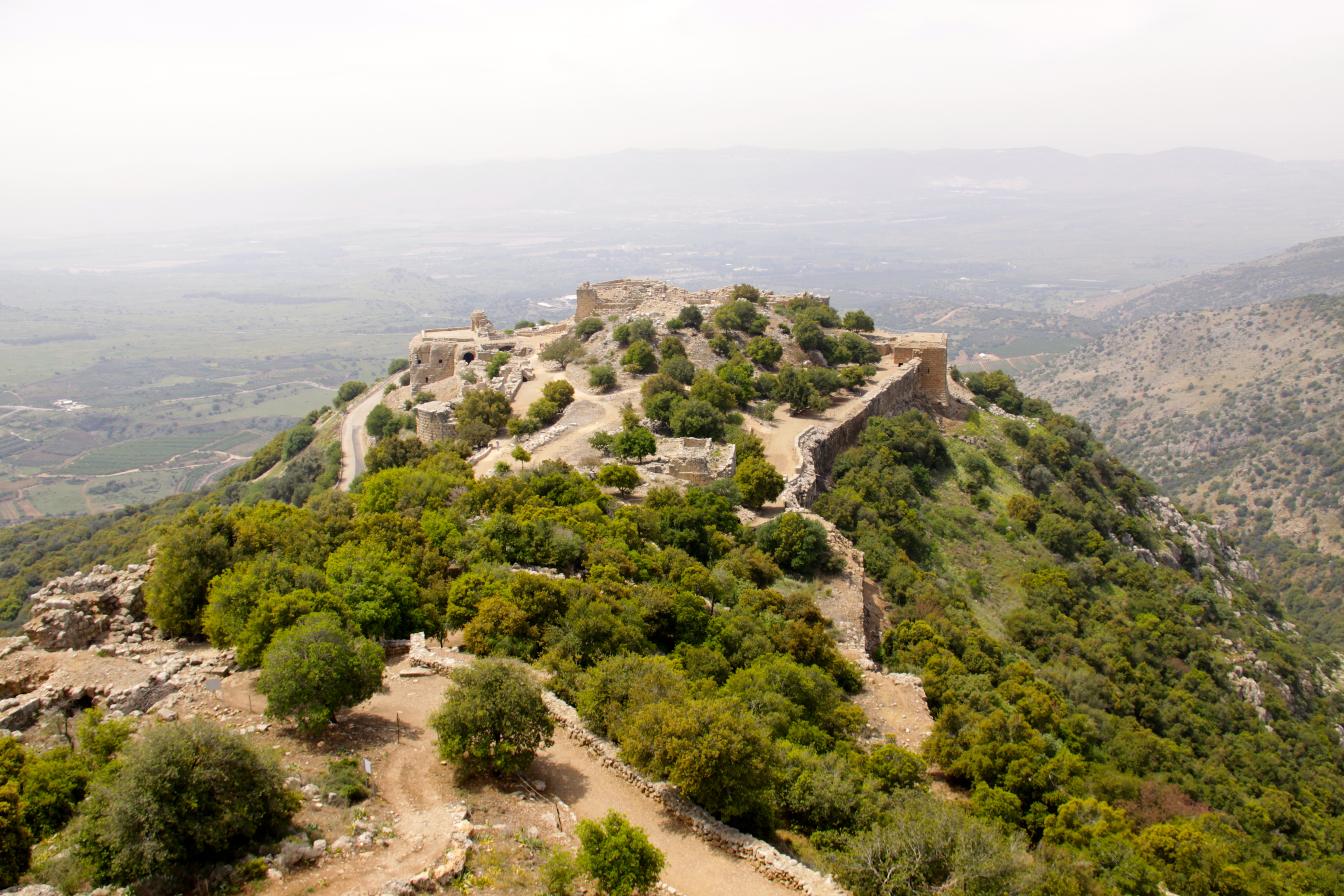 After some initial picnic-packing panic due to my forgetting cutlery (“We’ll have to scoop up the rice with Pringles!”), spoons were procured, and the day was off to a good start.  After a picturesque drive through verdant northern Israel, we arrived at Nimrod’s Fortress, looking very medieval indeed with its stone battlements crowning the mountaintop.