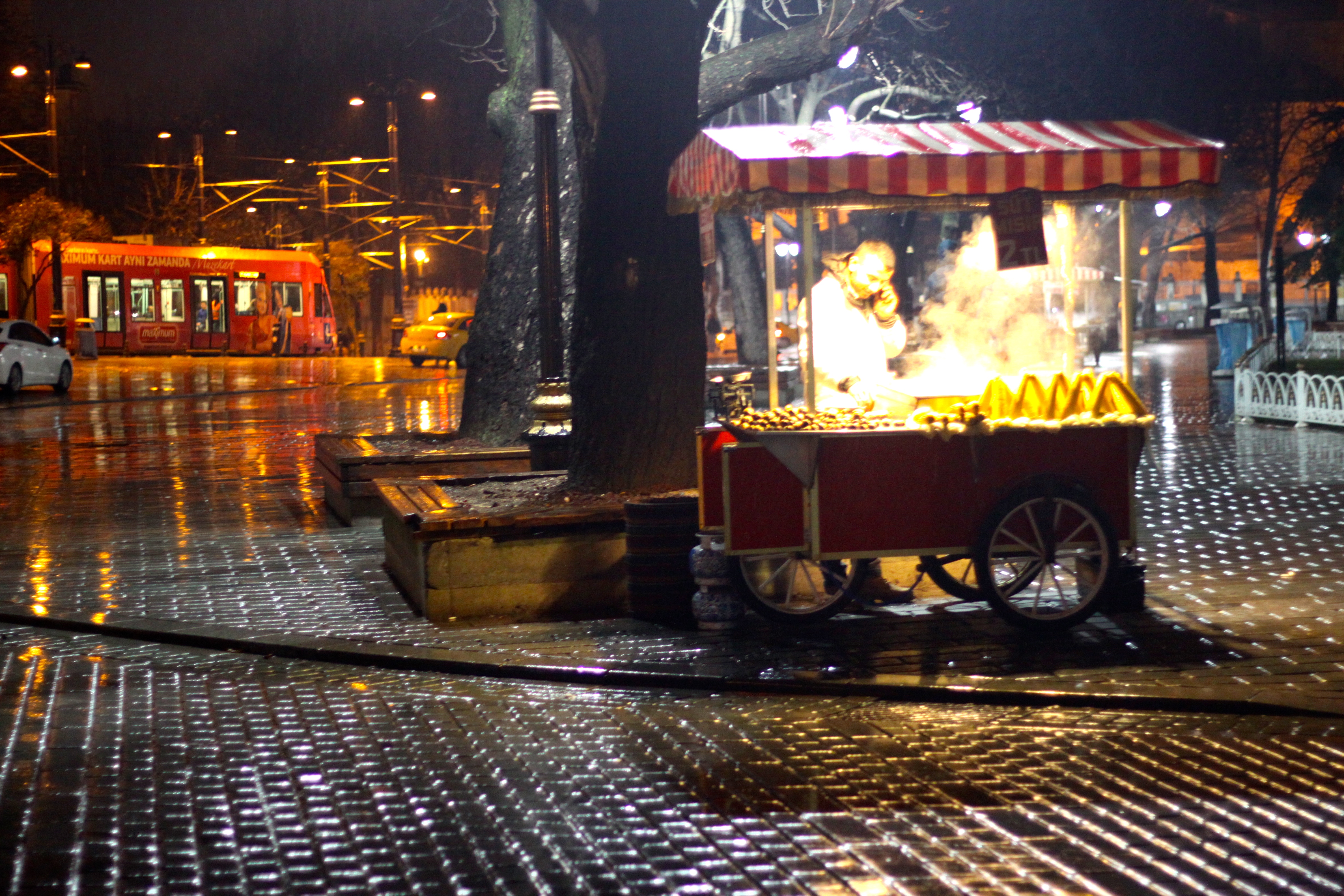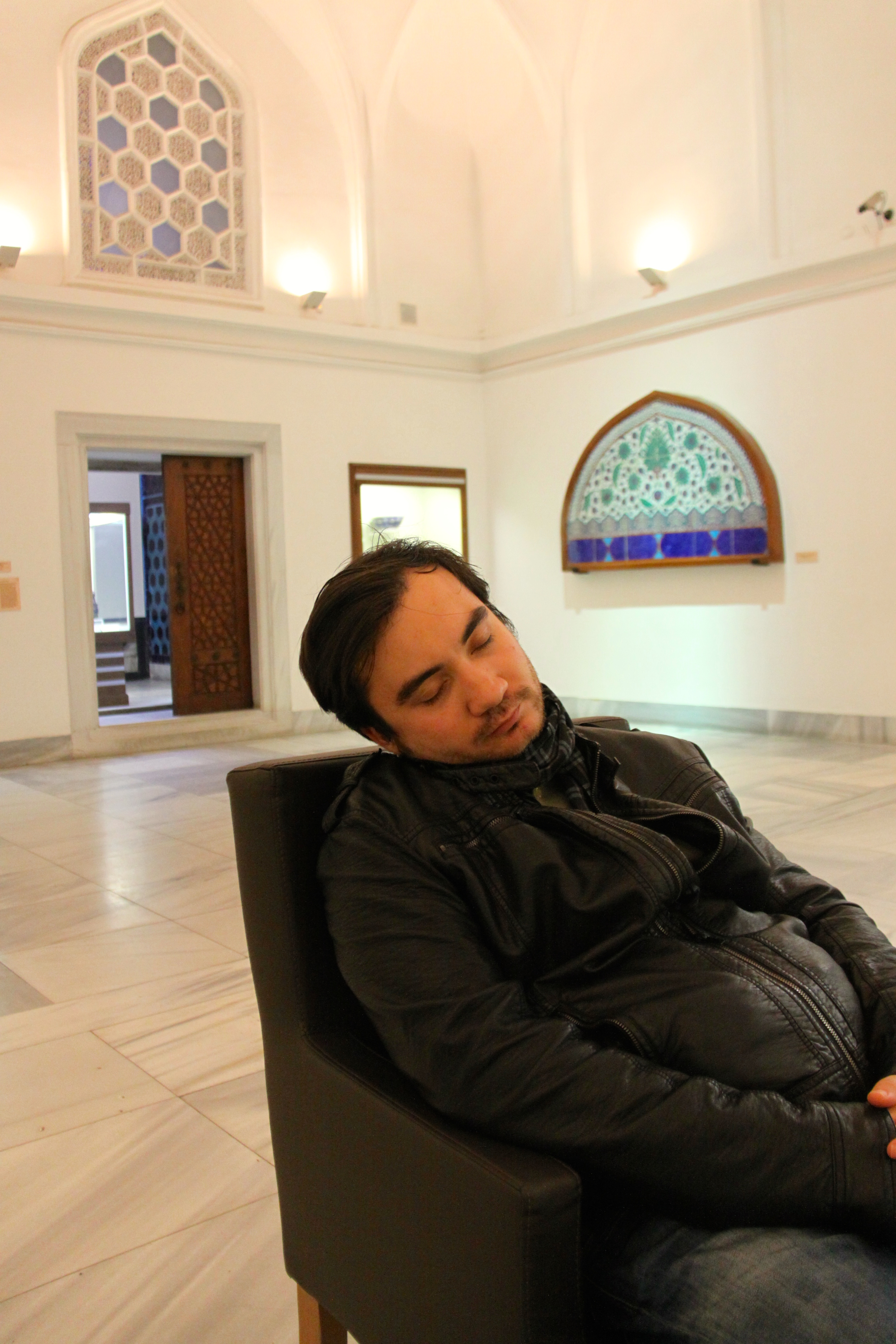 Next we headed over to the Grand Bazaar. I felt a peculiar draw toward the place, because it’s half-dream, half-nightmare. Sometimes I’ll awake from wonderful dreams where I’m shopping in a splendid chocolate shop or picking out beautiful clothes from a heavenly Macy’s. Yet, in real life, malls cause me anxiety, and shopping tends to be a chore. In the Grand Bazaar, the tantalizing possibility of finding something rare and exotic meets the stressful reality of pushy merchants and thronging crowds. We found it nearly impossible to navigate so we definitely left some routes unexplored, but we did find a coffeeshop where we tried Turkish coffee (i.e. hot coffee sludge) and also salep, which we received more favorably. This hearty drink combines flour made from starchy orchid tubers with sugar and milk or water and comes dusted with cinnamon. As a winter beverage, it’s a good alternative to hot chocolate for warding off the cold.