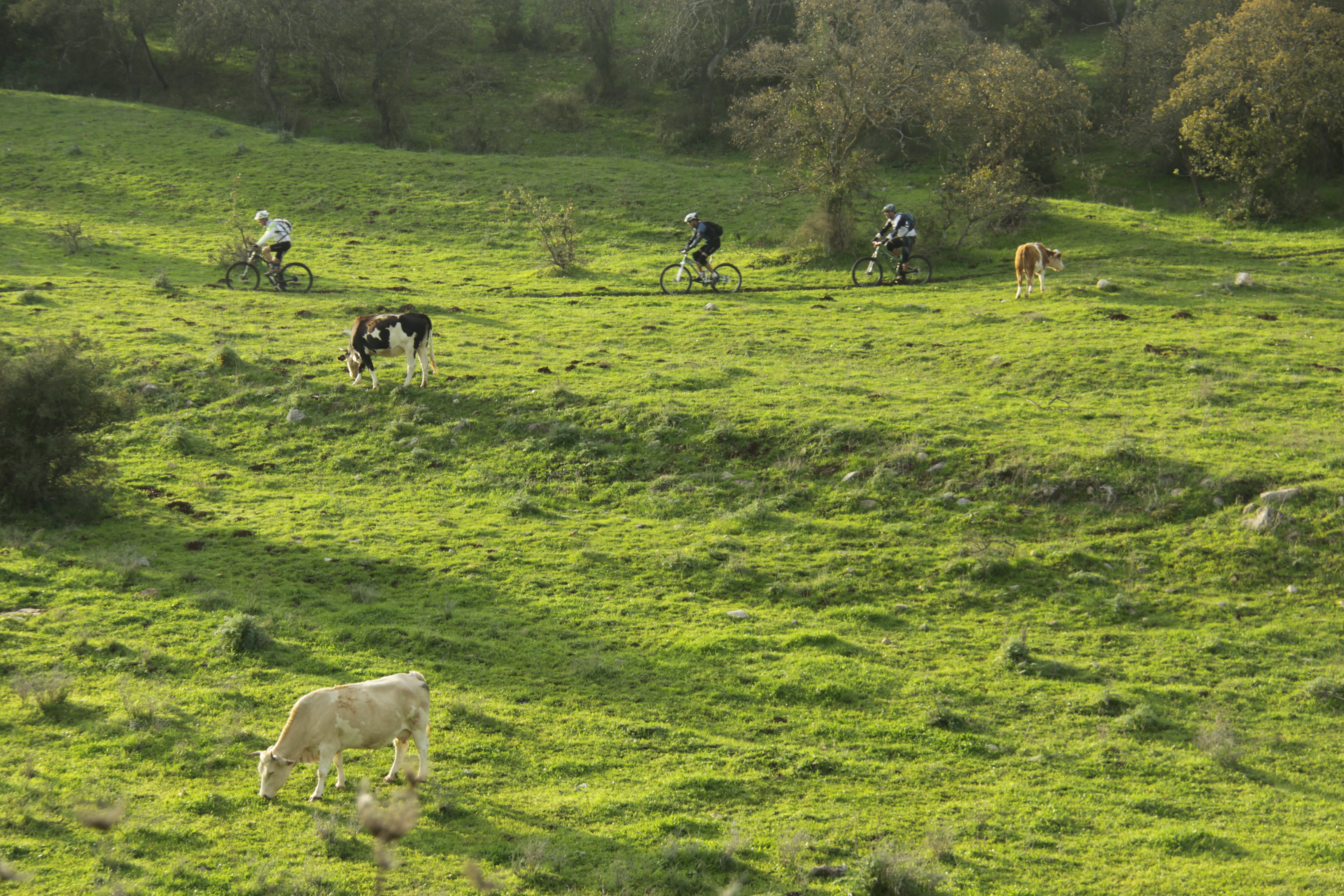 We were right. The winter rains had turned the hills and valleys of Galilee a vibrant green, shining like an emerald in the morning light. En route to our destination, we stopped at the most scenic gas station I’ve encountered. The station overlooked a field where cows grazed peacefully beside white cattle egrets. Occasionally this pastoral scene was interrupted by groups of bikers who zoomed down a path through the field, startling the cattle.