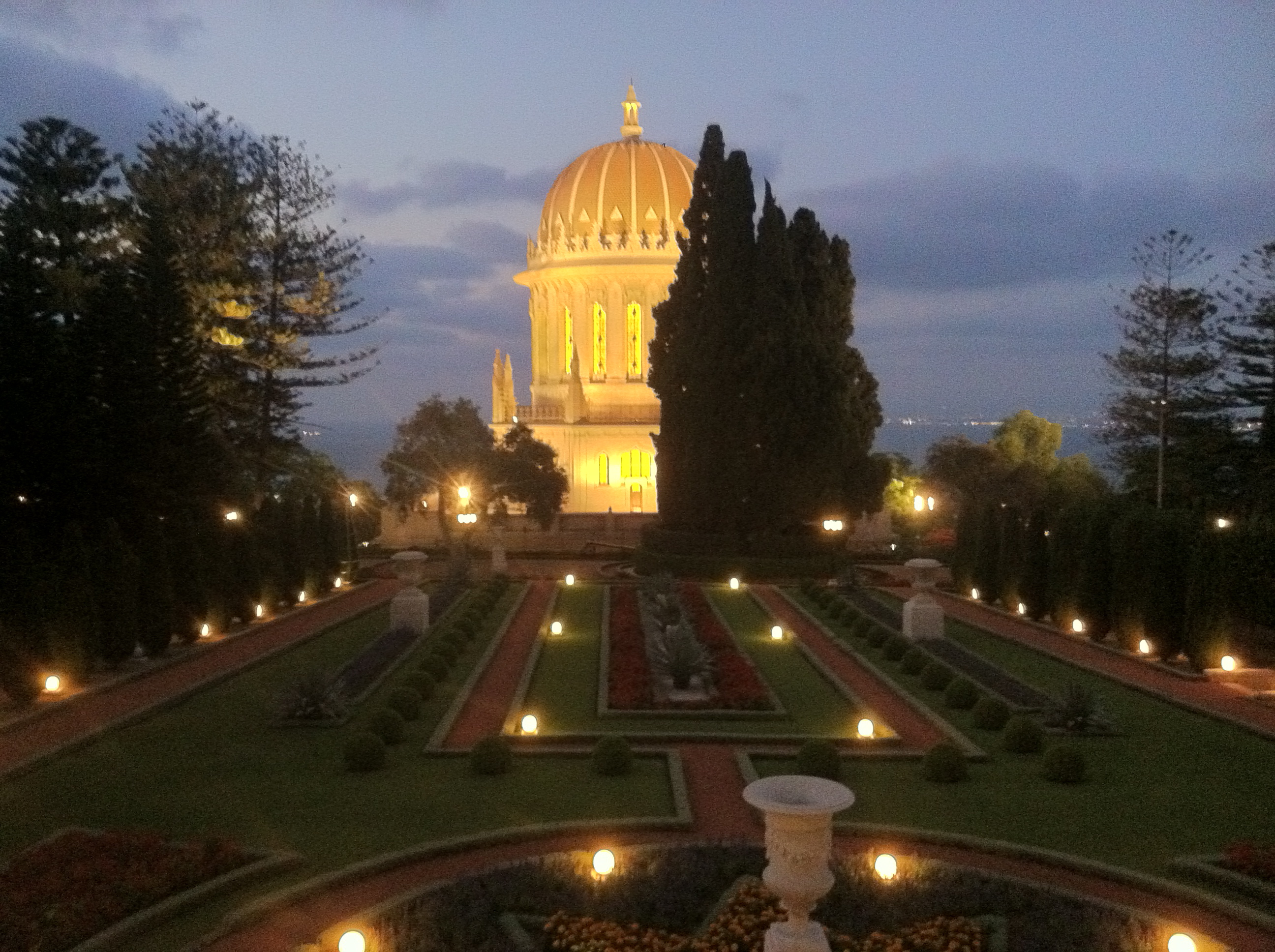 Later, in Akka, we were visiting one of the Bahá’í Holy Places where Bahá’u’lláh lived, which is near the heart of the crowded old city. It seemed we were bound to have our meditations disturbed that day. What had seemed to be merely a boisterous fair outside one end of the house soon turned into a procession of marching bands that filed directly under the windows, the drums and horns banishing all hope of focusing. If this was a test of my concentration, I think I failed–after the visit, we ended up joining the throngs below to watch the uniformed youth play their stirring songs.